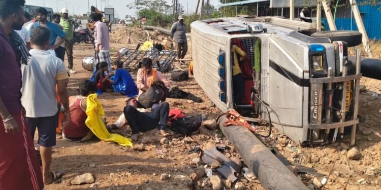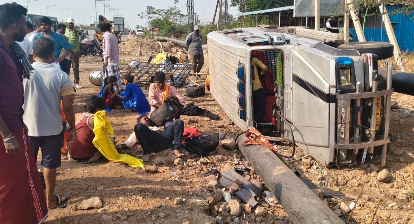 ವಿಜಯನಗರ : ಚಾಲಕನ ನಿಯಂತ್ರಣ ತಪ್ಪಿ ಕ್ರೂಸರ್ ಏಕಾಏಕಿ ಪಲ್ಟಿಯಾದ ಪರಿಣಾಮ ಮೂವರು ಮಕ್ಕಳು ಸೇರಿ 9 ಜನರಿಗೆ ಗಂಭೀರ ಗಾಯವಾಗಿರುವ ಘಟನೆ ವಿಜಯನಗರ ಜಿಲ್ಲೆಯ ಹೊಸಪೇಟೆ ತಾಲೂಕಿನ ಮರಿಯಮ್ಮನಹಳ್ಳಿ ಪಟ್ಟಣದ ಹೊರವಲಯದ ರಾಷ್ಟ್ರೀಯ ಹೆದ್ದಾರಿ 50ರಲ್ಲಿ ನಡೆದಿದೆ.
