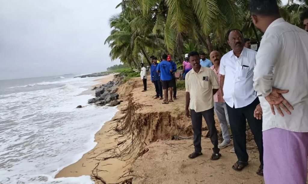 ಉಡುಪಿ : ಭೀಕರ ‘ಮೊಂಥಾ’ ಚಂಡಮಾರುತ ಆಂಧ್ರಪ್ರದೇಶದ ಕಾಕಿನಾಡ ಕರಾವಳಿಗೆ ಮಂಗಳವಾರ ಸಂಜೆ ಅಪ್ಪಳಿಸಿದೆ. ಪರಿಣಾಮ ಆಂಧ್ರಪ್ರದೇಶ ಮತ್ತು ಒಡಿಶಾದ ಕರಾವಳಿಯಲ್ಲಿ ಭಾರೀ ಮಳೆಯಾಗುತ್ತಿದೆ. ಈ ಮಧ್ಯೆ ‘ಮೊಂಥಾ’ ಸೈಕ್ಲೋನ್‌ ಎಫೆಕ್ಟ್‌ ಕರ್ನಾಟಕ ಕರಾವಳಿಗೂ ತಟ್ಟಿದ್ದು, ಉಡುಪಿಯ ಕಾಪುವಿನಲ್ಲಿರುವ ಮಟ್ಟು ಬೀಚ್‌ನಲ್ಲಿ ಭಾರೀ ಕಡಲ್ಕೊರೆತ ಉಂಟಾಗಿದೆ.