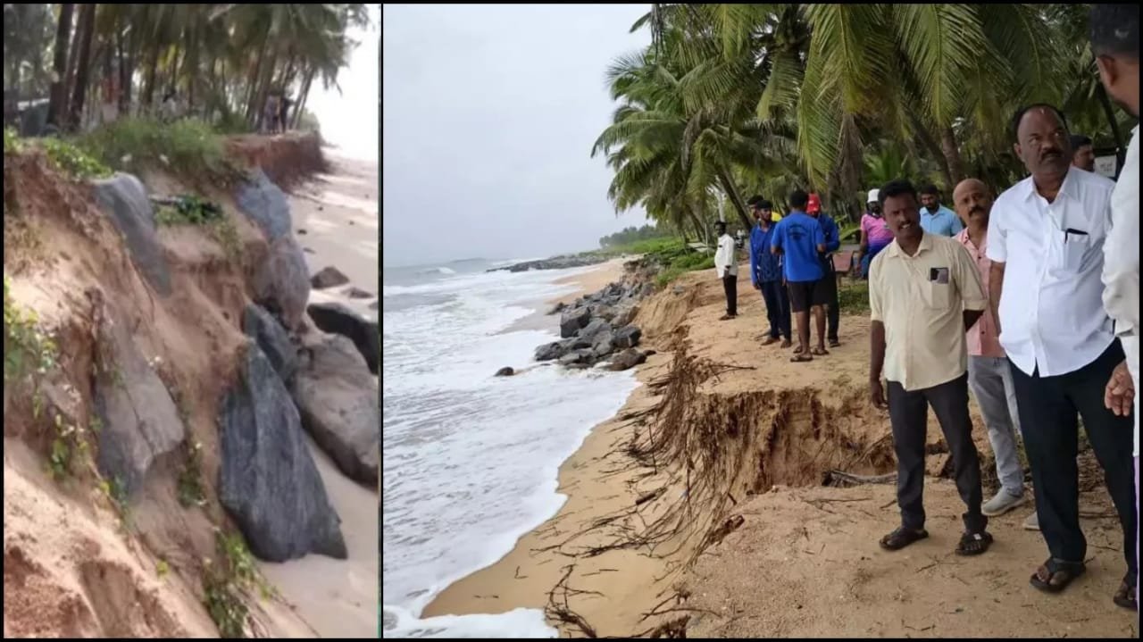 ಉಡುಪಿ : ಭೀಕರ ‘ಮೊಂಥಾ’ ಚಂಡಮಾರುತ ಆಂಧ್ರಪ್ರದೇಶದ ಕಾಕಿನಾಡ ಕರಾವಳಿಗೆ ಮಂಗಳವಾರ ಸಂಜೆ ಅಪ್ಪಳಿಸಿದೆ. ಪರಿಣಾಮ ಆಂಧ್ರಪ್ರದೇಶ ಮತ್ತು ಒಡಿಶಾದ ಕರಾವಳಿಯಲ್ಲಿ ಭಾರೀ ಮಳೆಯಾಗುತ್ತಿದೆ. ಈ ಮಧ್ಯೆ ‘ಮೊಂಥಾ’ ಸೈಕ್ಲೋನ್‌ ಎಫೆಕ್ಟ್‌ ಕರ್ನಾಟಕ ಕರಾವಳಿಗೂ ತಟ್ಟಿದ್ದು, ಉಡುಪಿಯ ಕಾಪುವಿನಲ್ಲಿರುವ ಮಟ್ಟು ಬೀಚ್‌ನಲ್ಲಿ ಭಾರೀ ಕಡಲ್ಕೊರೆತ ಉಂಟಾಗಿದೆ.