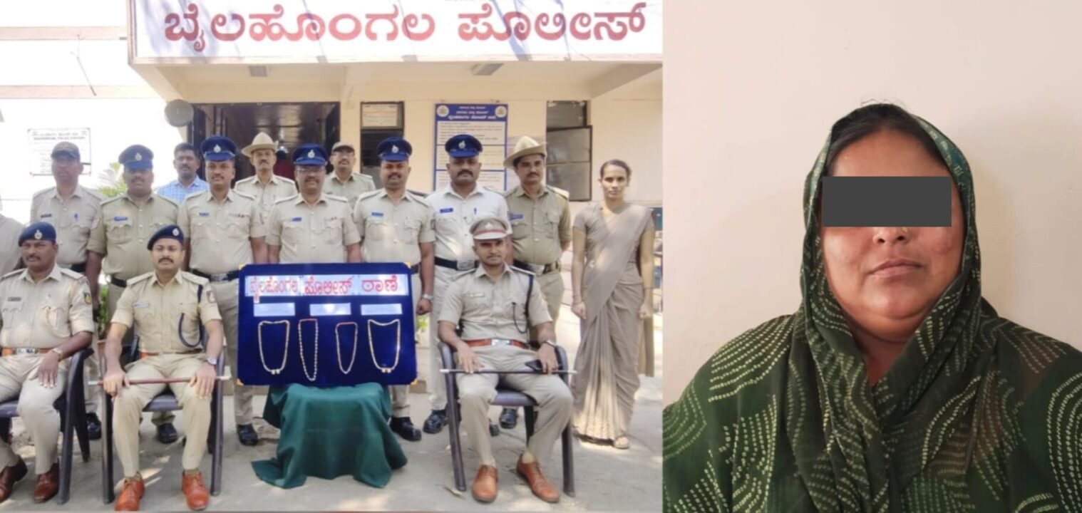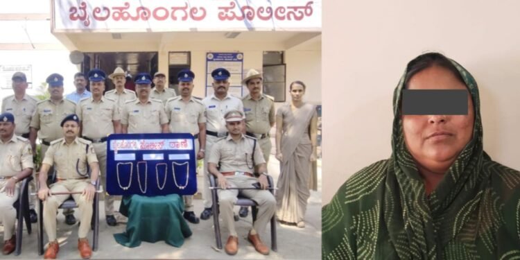 ಬೆಳಗಾವಿ : ಬೈಲಹೊಂಗಲ ಕೇಂದ್ರ ಬಸ್ ನಿಲ್ದಾಣದಲ್ಲಿ ಚಿನ್ನಾಭರಣ ಕಳ್ಳತನ ಮಾಡಿಕೊಂಡಿದ್ದ ಖತರ್ನಾಕ್ ಕಳ್ಳಿಯನ್ನು ಪೊಲೀಸರು ಅರೆಸ್ಟ್ ಮಾಡಿರುವ ಘಟನೆ ಬೆಳಕಿಗೆ ಬಂದಿದೆ.