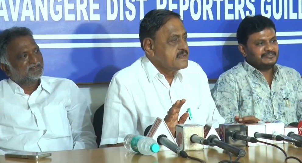 ದಾವಣಗೆರೆ ಜಿಲ್ಲೆ ಹೊನ್ನಾಳಿ ತಾಲೂಕಿನ ಕುಂದೂರು ಗ್ರಾಮದಲ್ಲಿ ಆ.9ರಂದು ಬೃಹತ್ ರೈತ ಸಭೆ ಆಯೋಜನೆಯ ವಿಚಾರವಾಗಿ ದಾವಣಗೆರೆಯಲ್ಲಿ ಮೂವರು ಕಾಂಗ್ರೆಸ್ ಶಾಸಕರು ಜಂಟಿ ಸುದ್ದಿಗೋಷ್ಠಿ ನಡೆಸಿದರು.