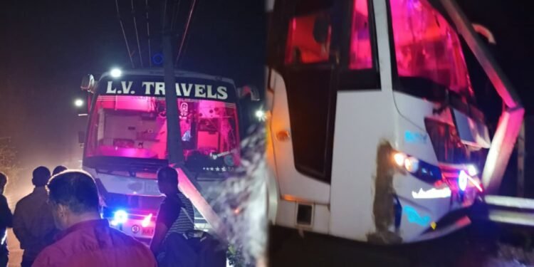 ಬೆಂಗಳೂರುನಿಂದ ಶೃಂಗೇರಿ ಕಡೆಗೆ ಬರುತ್ತಿದ್ದ ಖಾಸಗಿ ಬಸ್ ತಿರುವಿನಲ್ಲಿ ಚಾಲಕನ ನಿಯಂತ್ರಣ ತಪ್ಪಿ ರಸ್ತೆ ಬದಿಯಲ್ಲಿದ್ದ ವಿದ್ಯುತ್ ಕಂಬಕ್ಕೆ ಡಿಕ್ಕಿ ಹೊಡೆದಿದೆ. ಡಿಕ್ಕಿ ಹೊಡೆದ ರಭಸಕ್ಕೆ ವಿದ್ಯುತ್ ಕಂಬ ಮುರಿದು ಬಸ್ ಮೇಲೆಯೇ ಬಿದ್ದಿದೆ.