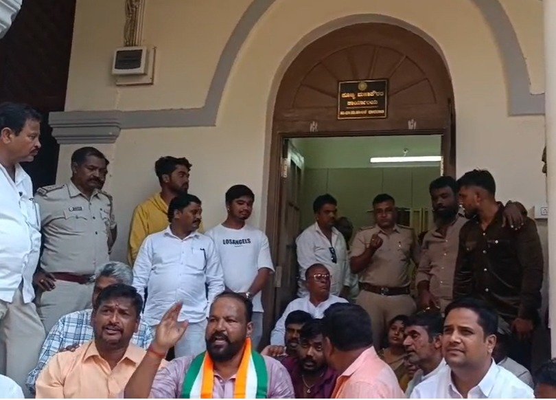ಸರ್ಕಾರದ ಅನುದಾನ ಬಿಡುಗಡೆಯಲ್ಲಿ ವಿಳಂಬ | ಮೇಯರ್‌ ಕಚೇರಿಗೆ ಮುತ್ತಿಗೆ ಹಾಕಿದ ಕೈ ಕಾರ್ಯಕರ್ತರು