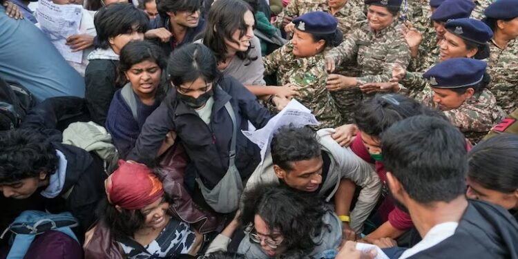 ಪೊಲೀಸರ ಪ್ರಕಾರ, ಪ್ರತಿಭಟನಾಕಾರರು ಯಾವುದೇ ಅನುಮತಿಯಿಲ್ಲದೆ ಇಂಡಿಯಾ ಗೇಟ್ ಬಳಿಯ ರಸ್ತೆಯ ಮಧ್ಯಭಾಗದಲ್ಲಿ ಸುಮಾರು ಒಂದು ಗಂಟೆಗೂ ಹೆಚ್ಚು ಕಾಲ ಕುಳಿತು ಸಂಚಾರಕ್ಕೆ ಅಡ್ಡಿಪಡಿಸಿದರು. ಸಂಚಾರ ದಟ್ಟಣೆ ಮತ್ತು ಆಂಬ್ಯುಲೆನ್ಸ್ಗಳಿಗೆ ತೊಂದರೆಯಾಗುತ್ತಿರುವುದನ್ನು ಮನಗಂಡ ಪೊಲೀಸರು ಅವರನ್ನು ಚದುರಿಸಲು ಮುಂದಾದರು. ಈ ವೇಳೆ ಪೊಲೀಸರ ಮತ್ತು ಪ್ರತಿಭಟನಾಕಾರರ ನಡುವೆ ಘರ್ಷಣೆ ಏರ್ಪಟ್ಟಿತು. ಕೆಲ ಪ್ರತಿಭಟನಾಕಾರರು ಬ್ಯಾರಿಕೇಡ್ಗಳನ್ನು ಮುರಿದು, ಪೊಲೀಸರ ಮೇಲೆ ಚಿಲ್ಲಿ ಸ್ಪ್ರೇ ಮತ್ತು ಪೆಪ್ಪರ್ ಸ್ಪ್ರೇ ಸಿಂಪಡಿಸಿದರು ಎಂದು ಆರೋಪಿಸಲಾಗಿದೆ.