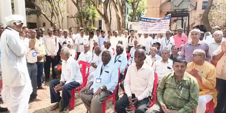 ಇಲ್ಲಿ ಸೇರಿದ್ದ ನಿವೃತ್ತರು ಕೇಂದ್ರ ಸರ್ಕಾರದ ವಿರುದ್ಧ ಘೋಷಣೆ ಕೂಗಿ, ಸದ್ಯ ಮಾಸಿಕ ಕೇವಲ 1170 ರೂಪಾಯಿ ಪೆನ್ಷನ್ ನೀಡಲಾಗುತ್ತಿದೆ. ಇದರಿಂದ ನಿವೃತ್ತರಿಗೆ ಯಾವುದೇ ಪ್ರಯೋಜನವಿಲ್ಲ ಕನಿಷ್ಠ ಮಾಸಿಕ 7500 ರೂಪಾಯಿ ಪೆನ್ಷನ್ ನೀಡಬೇಕು ಎಂದು ಆಕ್ರೋಶ ವ್ಯಕ್ತಪಡಿಸಿದರು.