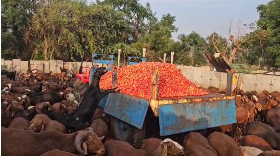 ಹೊಸಪೇಟೆಯ APMC ಯಿಂದ ಜಂಬುನಾಥನ ಹಳ್ಳಿ, ರಾಯರ ಕೆರೆ ಪ್ರದೇಶದಲ್ಲಿನ ಕುರಿ ಸಾಕಿರುವ ರೈತರು ಉಳಿದ ಟೊಮೆಟೊ, ಉಳ್ಳಾಗಡ್ಡಿ, ಬದನೆಕಾಯಿ ಟ್ರಾಕ್ಟರ್ ಮೂಲಕ ಲೋಡ್ ಮಾಡಿಕೊಂಡು ಬಂದು ಕುರಿಹಟ್ಟಿಗಳಿಗೆ ಕೊಂಡೋಯ್ಯುದು ಕುರಿಗಳಿಗೆ ಹಾಕಲಾಗುತ್ತಿದೆ.