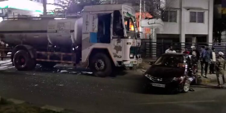 ಹಾಸನ : ನಗರದ ಎಂ.ಜಿ ರಸ್ತೆಯಲ್ಲಿ ಇಂದು ಮುಂಜಾನೆ ಡೀಸೆಲ್ ಟ್ಯಾಂಕರ್ ಹಾಗೂ ಕಾರಿನ ನಡುವೆ ಭೀಕರ ಅಪಘಾತ ಸಂಭವಿಸಿದ್ದು, ಭಾರೀ ದುರಂತವೊಂದು ತಪ್ಪಿದೆ.