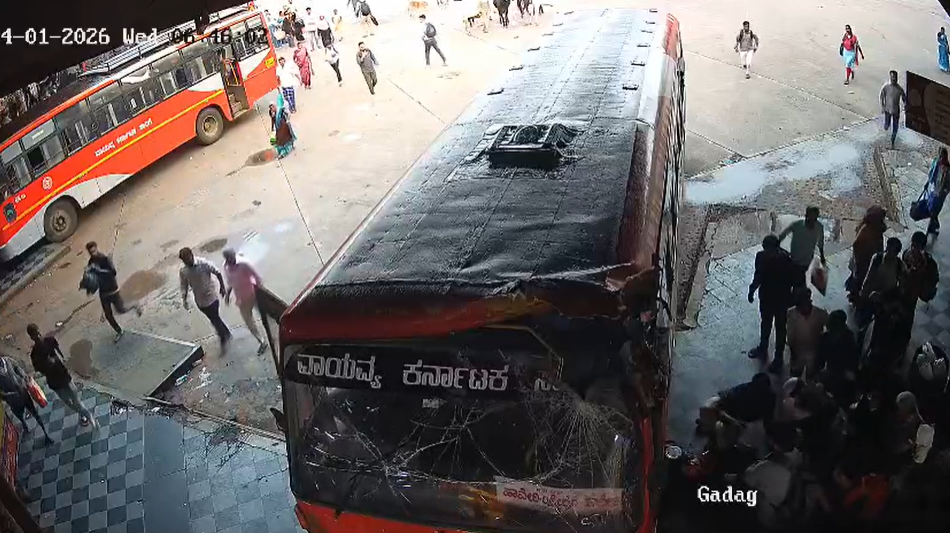 ಹಾವೇರಿ : ಹಾವೇರಿ ಬಸ್ ನಿಲ್ದಾಣದಲ್ಲಿ ಇಂದು ಬೆಳಿಗ್ಗೆ ನಡೆದ ಭೀಕರ ಅಪಘಾತದ ನಡೆದಿದೆ. ಸುಮಾರು ಬೆಳಿಗ್ಗೆ 7 ಗಂಟೆ ಸುಮಾರಿಗೆ ಹಾವೇರಿ ಬಸ್ ನಿಲ್ದಾಣದಲ್ಲಿ ಈ ಘಟನೆ ಸಂಭವಿಸಿದೆ. ಬಸ್ಗಾಗಿ ಫ್ಲಾಟ್ಫಾರ್ಮ್ನಲ್ಲಿ ಕಾಯುತ್ತಿದ್ದ ಪ್ರಯಾಣಿಕರ ನಡುವೆ ಏಕಾಏಕಿ ಬಸ್ ನುಗ್ಗಿದ ಪರಿಣಾಮ ನಾಲ್ವರು ಗಂಭೀರ ಗಾಯಗೊಂಡು ಆಸ್ಪತ್ರೆಗೆ ದಾಳಕಾಗಿದ್ದಾರೆ.