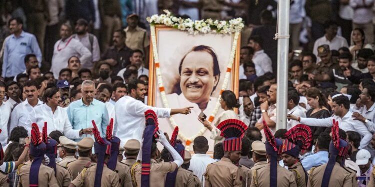 ಮುಂಬೈ: ಮಹಾರಾಷ್ಟ್ರದ ಪ್ರಭಾವಿ ನಾಯಕ, ‘ದಾದಾ’ ಎಂದೇ ಖ್ಯಾತರಾಗಿದ್ದ ಅಜಿತ್ ಪವಾರ್ ಅವರ ಅಂತ್ಯಕ್ರಿಯೆ ಗುರುವಾರ ಅವರ ರಾಜಕೀಯ ಕರ್ಮಭೂಮಿ ಬಾರಾಮತಿಯಲ್ಲಿ ಸಕಲ ಸರ್ಕಾರಿ ಗೌರವಗಳೊಂದಿಗೆ ನೆರವೇರಿತು. ವಿಮಾನ ಅಪಘಾತದಲ್ಲಿ ಅಕಾಲಿಕ ನಿಧನರಾದ ತಮ್ಮ ನೆಚ್ಚಿನ ನಾಯಕನಿಗೆ ವಿದಾಯ ಹೇಳಲು ಸಾವಿರಾರು ಅಭಿಮಾನಿಗಳು ಮತ್ತು ರಾಜಕೀಯ ಗಣ್ಯರು ಬಾರಾಮತಿಯಲ್ಲಿ ಜಮಾಯಿಸಿದ್ದರು.