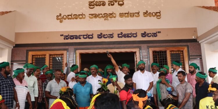 ಉಡುಪಿ: ಉಡುಪಿ ಜಿಲ್ಲೆಯ ಬೈಂದೂರು ತಾಲೂಕಿನಲ್ಲಿ ಪಟ್ಟಣ ಪಂಚಾಯಿತಿಯನ್ನು ರದ್ದುಗೊಳಿಸುವಂತೆ ಕೋರಿ ಅನಿರ್ದಿಷ್ಟಾವಧಿ ಧರಣಿಯನ್ನು ನಡೆಸಲಾಗುತ್ತಿದೆ. ಪ್ರತಿನಿತ್ಯ ರೈತರು ತಮ್ಮ ಕೆಲಸಗಳನ್ನು ಬಿಟ್ಟು ಬೈಂದೂರು ತಾಲೂಕು ಆಡಳಿತ ಕೇಂದ್ರದ ಎದುರುಗಡೆ ಧರಣಿಯನ್ನು ಮಾಡುತ್ತಿದ್ದಾರೆ. ಇಂದು 33ನೇ ದಿನ, ಪಟ್ಟಣ ಪಂಚಾಯಿತಿ ವಿಚಾರವಾಗಿ ಪ್ರತಿನಿಧಿಗಳ ಆಶ್ವಾಸನೆಗಳಿಗೆ ತಕ್ಕಂತೆ ಕೆಲಸಗಳು ನಡೆಯುತ್ತಿಲ್ಲ, ಹೀಗಾಗಿ ಹೋರಾಟವನ್ನು ಇನ್ನೊಂದು ಹಂತಕ್ಕೆ ತೆಗೆದುಕೊಂಡು ಹೋಗುವಂತಹ ಸೂಚನೆಯನ್ನು ಧರಣಿಯ ನೇತೃತ್ವ ವಹಿಸಿದ ದೀಪಕ್ ಕುಮಾರ್ ಶೆಟ್ಟಿ ನೀಡಿದ್ದಾರೆ.