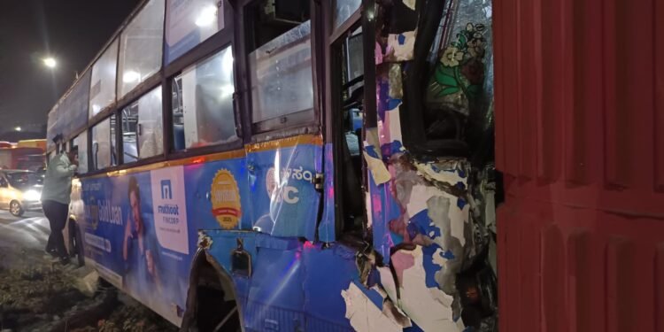 ಮೆಟ್ರೊ ಪಿಲ್ಲರ್ 607ಕ್ಕೆ ಬಿಎಂಟಿಸಿ ಬಸ್ ಡಿಕ್ಕಿ ಹೊಡೆದಿದೆ. ಪರಿಣಾಮ ವಾಹನದಲ್ಲಿದ್ದ 10ಕ್ಕೂ ಅಧಿಕ ಜನರು ಗಾಯಗೊಂಡಿದ್ದು, ಆಸ್ಪತ್ರೆಗೆ ದಾಖಲಾಗಿ ಚಿಕಿತ್ಸೆ ಪಡೆಯುತ್ತಿದ್ದಾರೆ.