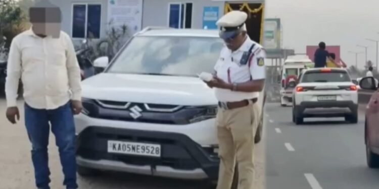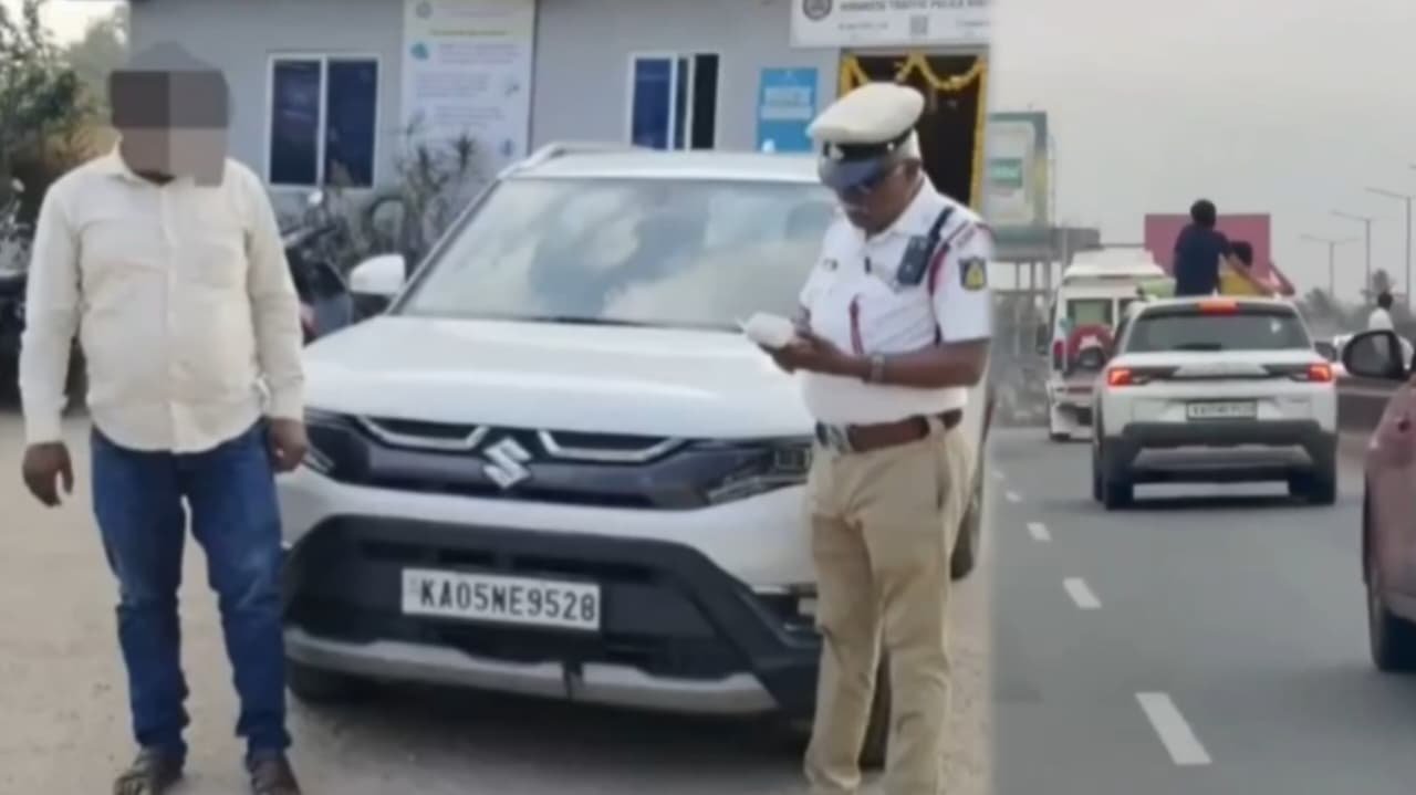 ಹೊಸಕೋಟೆಯಿಂದ ಬೆಂಗಳೂರು ಕಡೆಗೆ ಪ್ರಯಾಣ ಮಾಡುತ್ತಿದ್ದಾಗ ಈ ರೀತಿ ಚಾಲನೆ ಮಾಡಿದ್ದು, ಪೊಲೀಸರು ದಂಡವಿಧಿಸಿ ಎಚ್ಚರಿಕೆ ಕೊಟ್ಟಿದ್ದಾರೆ.