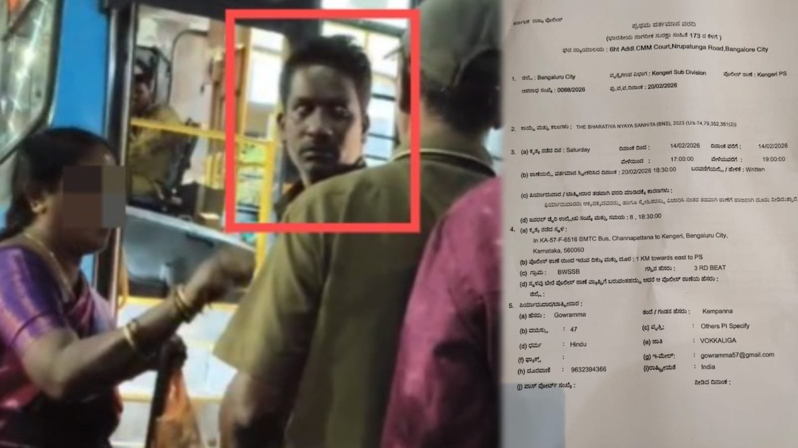 ಈ ಘಟನಾ ಸಂಬಂಧ ಕೆಂಗೇರಿ ಪೊಲೀಸರಿಗೆ ಗೌರಮ್ಮ ಎಂಬ ಮಹಿಳೆ ದೂರು ನೀಡಿದ್ದಾರೆ. ಗೌರಮ್ಮ ನೀಡಿದ ದೂರಿನ ಆಧಾರದ ಮೇಲೆ ಕಂಡಕ್ಟರ್ ಮೇಲೆ ಎಫ್ಐಆರ್ ದಾಖಲಾಗಿದೆ.