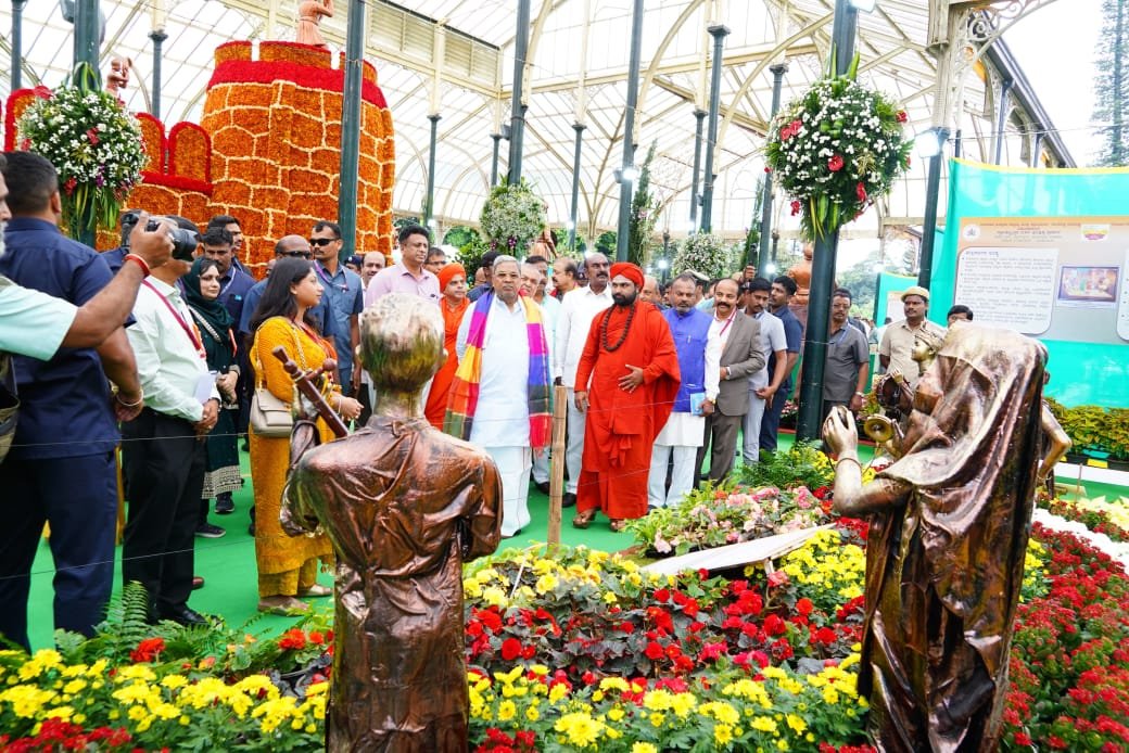 ಇಂದಿನಿಂದ ಆರಂಭಗೊಳ್ಳುತ್ತಿರುವ ಲಾಲ್ ಬಾಗ್ ಫಲಪುಷ್ಪ ಪ್ರದರ್ಶನಕ್ಕೆ ಸಿಎಂ ಸಿದ್ದರಾಮಯ್ಯ ಚಾಲನೆ ನೀಡಿದರು.