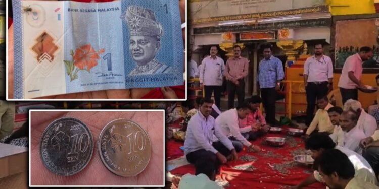 ಕಲಬುರಗಿ : ಜಿಲ್ಲೆಯ ಚಿತ್ತಾಪುರ ಪಟ್ಟಣದಲ್ಲಿರುವ ನಾಗಾವಿ ಯಲ್ಲಮ್ಮ ದೇವಸ್ಥಾನದ ಹುಂಡಿ ಎಣಿಕೆ ವೇಳೆ ವಿದೇಶಿ ಕರೆನ್ಸಿ ಪತ್ತೆಯಾಗಿದೆ. ಹುಂಡಿಯಲ್ಲಿ ಮಲೇಷ್ಯಾದ 18 ನೋಟುಗಳು ಹಾಗೂ 2 ನಾಣ್ಯಗಳು ದೊರೆತಿದ್ದು, ಸ್ಥಳೀಯರಲ್ಲೂ ಕುತೂಹಲ ಮೂಡಿಸಿದೆ.
