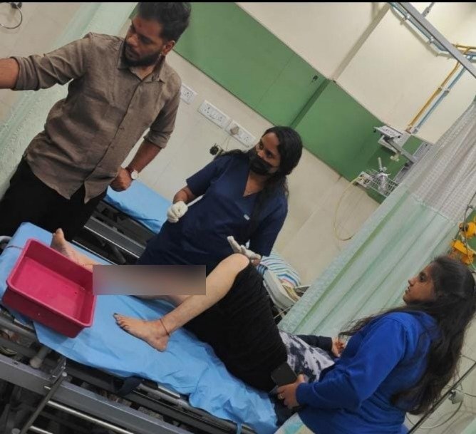 ಗಾಯಾಳು ಅನಿತಾ ಸಂಬಂಧಿ ಅನುಷಾಗೆ ಹೊಟ್ಟೆ ನೋವು ಕಾಣಿಸಿಕೊಂಡಿತ್ತು. ಹೀಗಾಗಿ ಬೈಕ್ ನಲ್ಲಿ ಸಂಬಂಧಿಗಳಾದ ಕಿರಣ್, ಅನಿತಾ ಆಸ್ಪತ್ರೆಗೆ ತೆರಳುತ್ತಿದ್ದರು. ಈ ವೇಳೆ ಬ್ಯಾಟರಾನಪುರದ ಎಂ.ಎಂ.ರಸ್ತೆ ಬಳಿ ನಾಯಿಗಳು ಬೊಗಳಿವೆ. ಭಯದಿಂದ ಕಿರಣ್ ಬೈಕ್ ಅನ್ನು ಸ್ವಲ್ಪ ಬಲಕ್ಕೆ ಹೋಗಿದ್ದಾರೆ. ಈ ವೇಳೆ ವೇಗವಾಗಿ ಬಂದ ದಿವ್ಯಾ ಸುರೇಶ್ ಕಾರ್ ಬೈಕ್ಗೆ ಡಿಕ್ಕಿ ಹೊಡೆದಿದೆ. ಕಾರ್ ಡಿಕ್ಕಿ ಹೊಡೆದಾಗ ಅನಿತಾ ಕಾಲಿನ ಮಂಡಿ ಚಿಪ್ಪಿಗೆ ಪೆಟ್ಟಾಗಿದೆ. ನಂತರ ಗಾಯಳುವನ್ನು ಆಸ್ಪತ್ರೆಗೆ ದಾಖಲಿಸಲಾಗಿತ್ತು. ಆಸ್ಪತ್ರೆಯಲ್ಲಿ ಪರೀಕ್ಷೆ ನಡೆಸಿದ ವೈದ್ಯರು ಕಾಲಿನ ಮಂಡಿ ಚಿಪ್ಪು ಮುರಿದಿದೆ ಎಂದು ತಿಳಿಸಿದ್ದಾರೆ.