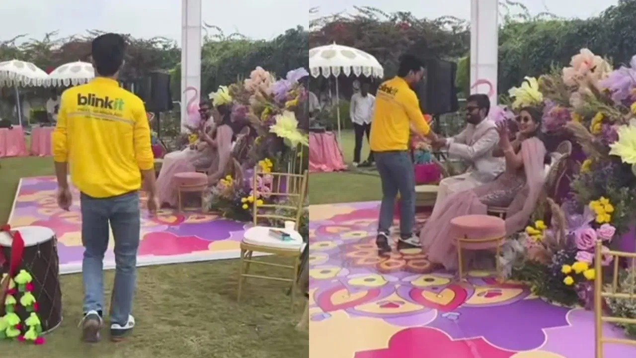 ಮದ್ವೆ ಶಾಸ್ತ್ರಗಳನ್ನು ಮನೆ ಮಂದಿ ಸಂಭ್ರಮಿಸುವುದನ್ನು ನೀವು ನೋಡಿರುತ್ತೀರಿ. ಈಗಂತೂ ಅರಶಿನ ಶಾಸ್ತ್ರಕ್ಕೆ ಮನೆ ಮಂದಿಯೆಲ್ಲರೂ ಎಲ್ಲೋ ಕಲರ್ ಥೀಮ್ನಲ್ಲೇ ರೆಡಿ ಆಗ್ತಾರೆ. ಆದರೆ ಇಲ್ಲೊಬ್ಬ ಯುವಕನು ಸ್ನೇಹಿತನ ಹಳದಿ ಶಾಸ್ತ್ರಕ್ಕೆ ಸ್ವಲ್ಪ ಡಿಫರೆಂಟ್ ಆಗಿಯೇ ಬಂದಿದ್ದಾನೆ. ಹಳದಿ ಬಣ್ಣದ ಉಡುಗೆ ಇಲ್ಲವೆಂದು ಬ್ಲಿಂಕಿಟ್ ಸಮವಸ್ತ್ರ ಧರಿಸಿ ಎಂಟ್ರಿ ಕೊಟ್ಟಿದ್ದು, ವಿಡಿಯೋ ಸೋಶಿಯಲ್ ಮೀಡಿಯಾದಲ್ಲಿ ಸಖತ್ ವೈರಲ್ ಆಗಿದೆ.