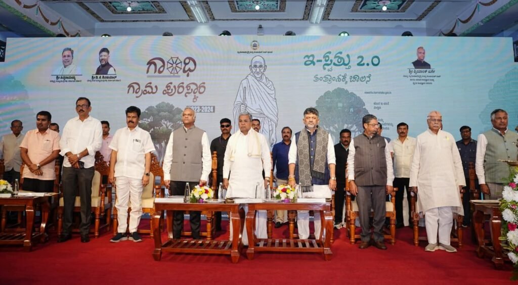 ಬೆಂಗಳೂರು\ಉಡುಪಿ : ವಿಧಾನಸೌಧದ ಬ್ಯಾಂಕ್ವೆಟ್ ಹಾಲ್ನಲ್ಲಿ ನಡೆದ ಇ-ಸ್ವತ್ತು 2.0 ತಂತ್ರಾಂಶಕ್ಕೆ ಚಾಲನೆ ನೀಡಿ ಹಾಗೂ 2023-2024ನೇ ಸಾಲಿನ ಗಾಂಧಿ ಗ್ರಾಮ ಪುರಸ್ಕಾರಕ್ಕೆ ಆಯ್ಕೆಯಾದ ರಾಜ್ಯದ ಎಲ್ಲಾ ಜಿಲ್ಲಾವಾರು ವ್ಯಾಪ್ತಿಯ ಗ್ರಾ.ಪಂ.ಗಳ ಅಧ್ಯಕ್ಷರು ಹಾಗೂ ಪಂಚಾಯತಿ ಅಭಿವೃದ್ಧಿ ಅಧಿಕಾರಿಗಳಿಗೆ ಮುಖ್ಯಮಂತ್ರಿಗಳು ಹಾಗೂ ಉಪಮುಖ್ಯಮಂತ್ರಿಗಳು ಸಾಂಕೇತಿಕವಾಗಿ ಪ್ರಶಸ್ತಿ ವಿತರಿಸಿದರು.