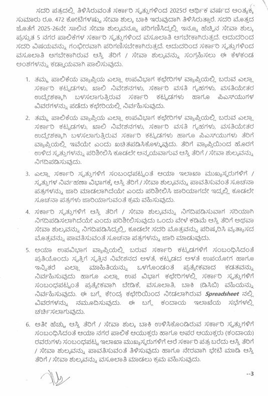 ಈ ದೂರಿನ ಬೆನ್ನಲ್ಲೇ ಗ್ರೇಟರ್ ಬೆಂಗಳೂರು ಪ್ರಾಧಿಕಾರದ ಕಂದಾಯ ಇಲಾಖೆಯ ವಿಶೇಷ ಆಯುಕ್ತರು 5 ನಗರ ಪಾಲಿಕೆಗಳ ಆಯುಕ್ತರಿಗೆ ಸುತ್ತೋಲೆಯನ್ನು ಹೊರಡಿಸಿದ್ದು, ಕೂಡಲೇ ಈ ಬಗ್ಗೆ ಕ್ರಮ ಕೈಗೊಳ್ಳಬೇಕು, ಹಾಗೂ ಸೇವಾ ತೆರಿಗೆ ವಸೂಲಿ ಮಾಡದ ಅಧಿಕಾರಿಗಳ ವಿರುದ್ಧ ಕಠಿಣ ಕ್ರಮಗಳನ್ನು ತೆಗೆದುಕೊಳ್ಳಬೇಕೆಂದು ಆದೇಶಿಸಿದ್ದಾರೆ.