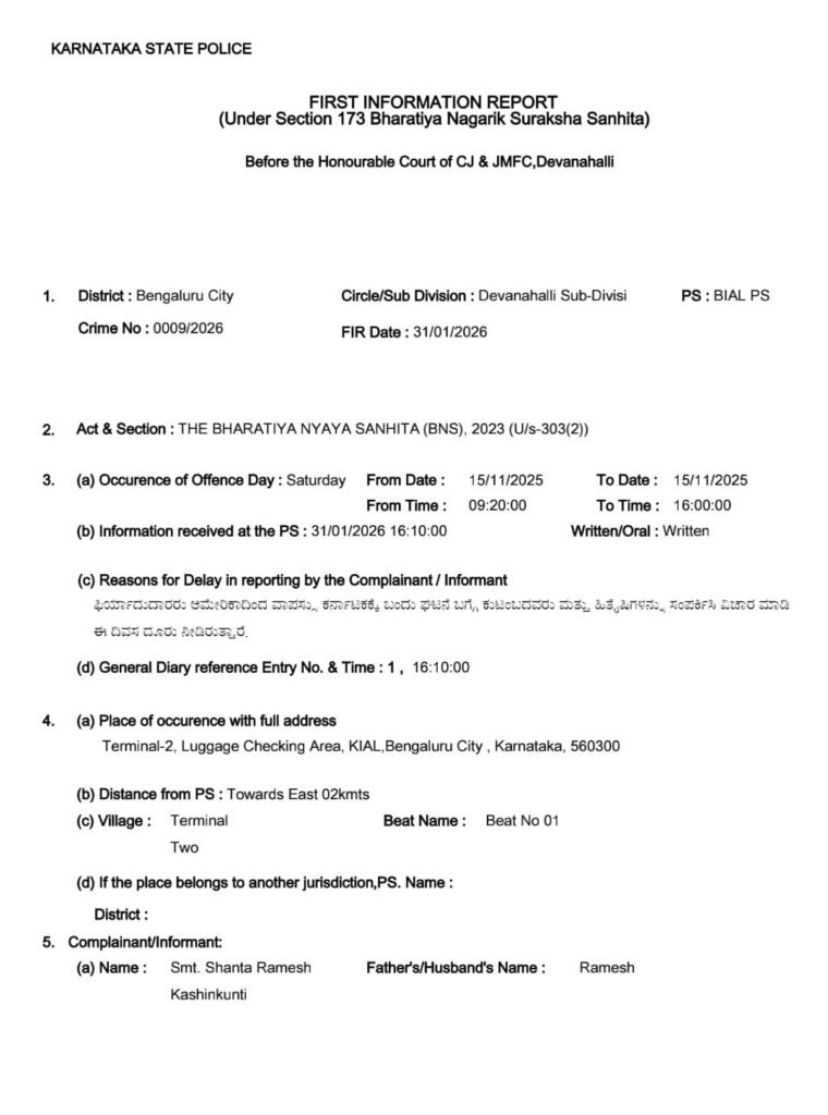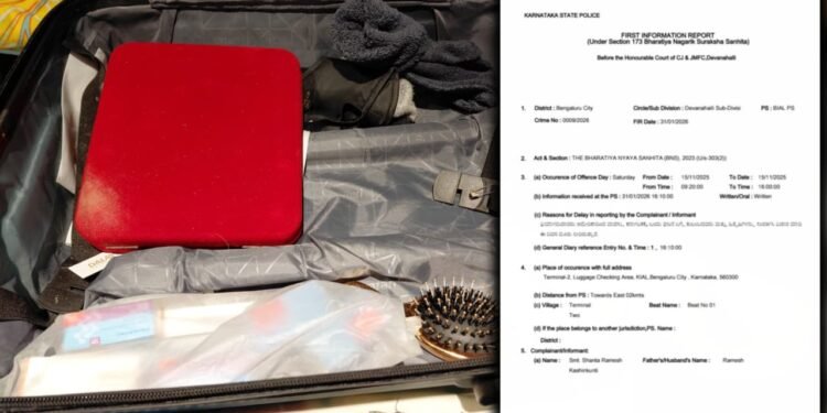 ಹುಬ್ಬಳ್ಳಿ ಮೂಲದ ಮಹಿಳೆ ಕಳೆದ ನವೆಂಬರ್ ತಿಂಗಳಲ್ಲಿ ಕೆಐಎಬಿಯಿಂದ ದುಬೈ ಮೂಲಕ ಅಮೇರಿಕಾಗೆ ಪ್ರಯಾಣಿಸುತ್ತಿದ್ದ ವೇಳೆ ಈ ಕಳ್ಳತನ ನಡೆದಿದೆ ಎನ್ನಲಾಗಿದೆ. ಅಮೇರಿಕಾದಲ್ಲಿ ಮಗನೊಂದಿಗೆ ವಾಸವಾಗಿದ್ದ ಅವರು ಇತ್ತೀಚೆಗೆ ರಾಜ್ಯಕ್ಕೆ ವಾಪಸ್ ಬಂದ ಹಿನ್ನೆಲೆ, ಕಳ್ಳತನದ ಕುರಿತು ಇದೀಗ ದೂರು ದಾಖಲಿಸಿದ್ದಾರೆ.