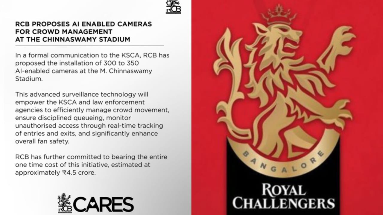 ಬೆಂಗಳೂರು: ಈ ಬಾರಿಯ ಐಪಿಎಲ್ ಪಂದ್ಯ ಬೆಂಗಳೂರಿಂದ ಹೊರಗಡೆ ಹೋಗುತ್ತಾ ಎಂಬ ಪ್ರಶ್ನೆಯ ನಡುವೆ ಅಭಿಮಾನಿಗಳಿಗೆ ಸಿಹಿ ಸುದ್ದಿ ಸಿಕ್ಕಿದೆ. ಸುಮಾರು 4 ಕೋಟಿ ರೂ. ವೆಚ್ಚದಲ್ಲಿ ಚಿನ್ನಸ್ವಾಮಿ ಮೈದಾನಕ್ಕೆ ಕೃತಕ ಬುದ್ಧಿಮತ್ತೆ(AI) ಕ್ಯಾಮೆರಾ ಅಳವಡಿಸಲು ರಾಯಲ್ ಚಾಲೆಂಜರ್ಸ್ ಬೆಂಗಳೂರು (RCB) ಮುಂದಾಗಿದೆ.
