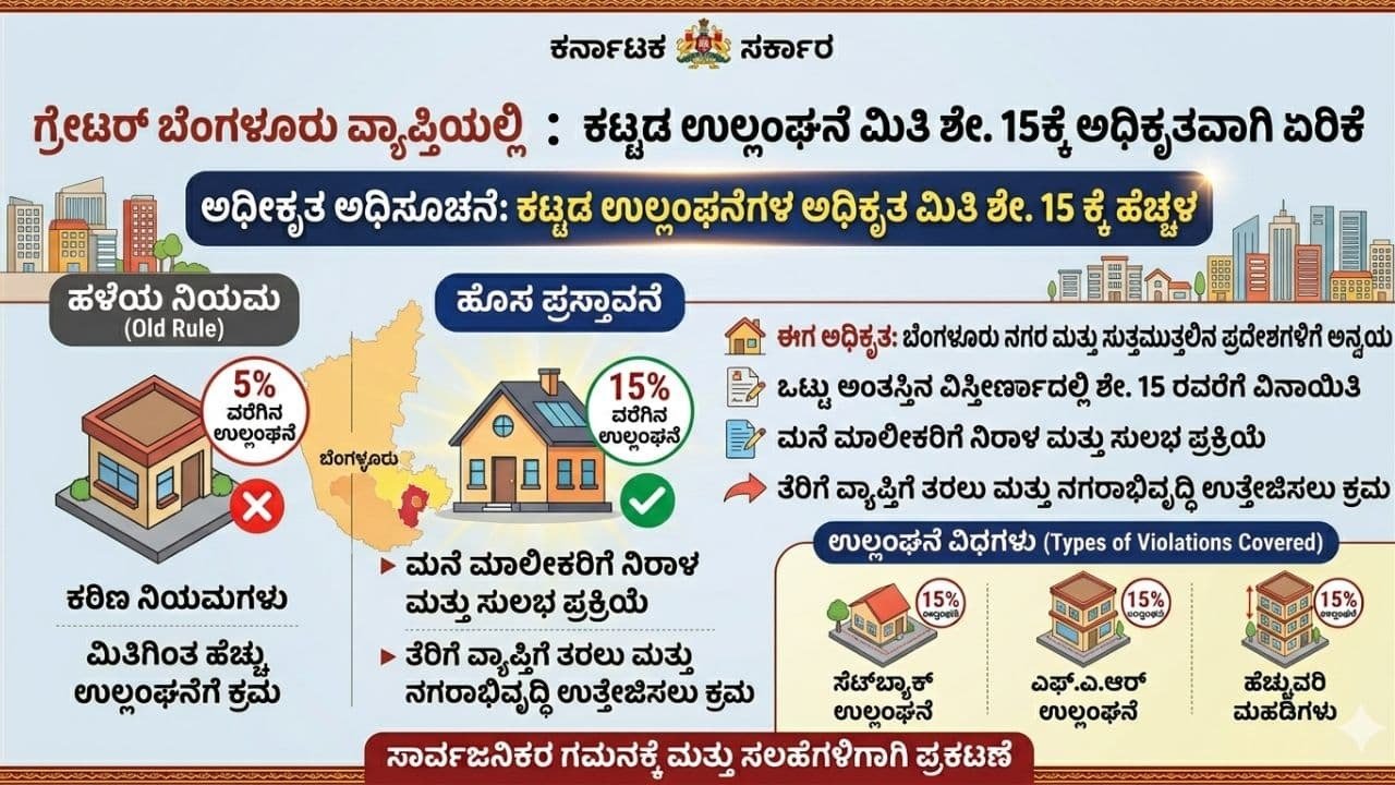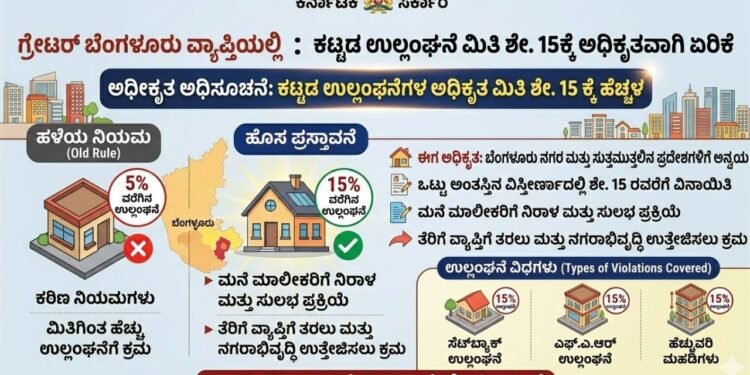 ಆದರೆ, ಈ ಮಿತಿಯಾಚೆಗಿನ ಉಲ್ಲಂಘನೆಗಳ ವಿರುದ್ಧ ಕಟ್ಟುನಿಟ್ಟಿನ ಕ್ರಮ ಕೈಗೊಳ್ಳಲು ಸರ್ಕಾರ ಚಿಂತನೆ ನಡೆಸುತ್ತಿದೆ. ಸಾರ್ವಜನಿಕರ ಆರೋಗ್ಯ, ಸುರಕ್ಷತೆ ಹಾಗೂ ಗಾಳಿ-ಬೆಳಕು ಮಾನದಂಡಗಳನ್ನು ಗಮನದಲ್ಲಿಟ್ಟುಕೊಂಡು ಈ ತಿದ್ದುಪಡಿ ರೂಪಿಸಲಾಗಿದೆ ಎಂದು ಪ್ರಕಟಣೆ ತಿಳಿಸಿದೆ.
