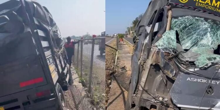ಡಿವೈಡರ್‌ಗೆ ಡಿಕ್ಕಿ ಹೊಡೆದ ಗೂಡ್ಸ್ ವಾಹನ.. ಓರ್ವ ಸ್ಥಳದಲ್ಲೇ ಸಾವು!