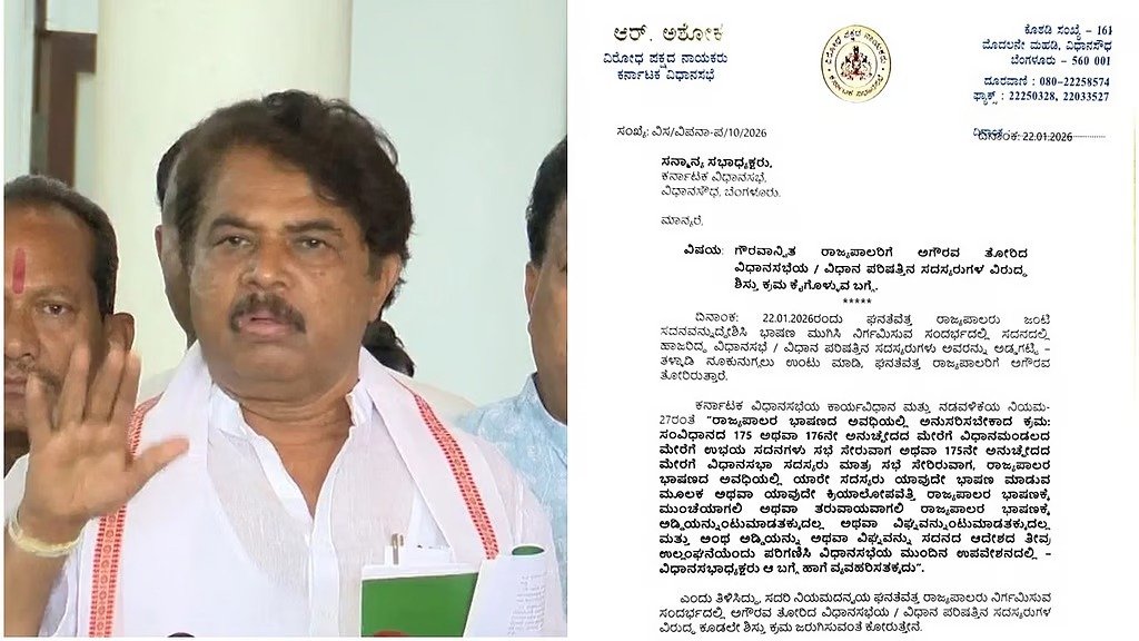ರಾಜ್ಯಪಾಲರಿಗೆ ಅಡ್ಡಿಪಡಿಸಿದ ಶಾಸಕರ ವಿರುದ್ಧ ಕಠಿಣ ಕ್ರಮ ಕೈಗೊಳ್ಳಬೇಕು ಎಂದು ಆಗ್ರಹಿಸಿದ ಅಶೋಕ್, ಈ ಕುರಿತು ವಿಧಾನಸಭಾ ಸ್ಪೀಕರ್ ಯು.ಟಿ. ಖಾದರ್ ಅವರಿಗೆ ಪತ್ರ ನೀಡುವುದಾಗಿ ತಿಳಿಸಿದರು. ಸದನದಲ್ಲಿ ಅಗೌರವ ತೋರಿದವರನ್ನು ಹೊರಹಾಕಬೇಕು ಎಂದೂ ಒತ್ತಾಯಿಸಿದರು. ಇದೇ ರಾಜ್ಯಪಾಲರು ಸರ್ಕಾರದ ಅನೇಕ ಬಿಲ್‌ಗಳಿಗೆ ಸಹಿ ಹಾಕಿದ್ದಾರೆ. ಆಗ ರಾಜ್ಯಪಾಲರು ಸರಿಯಾಗಿದ್ದರಾ ಎಂದು ಕಾಂಗ್ರೆಸ್‌ ಅನ್ನು ಪ್ರಶ್ನಿಸಿದ್ದಾರೆ.