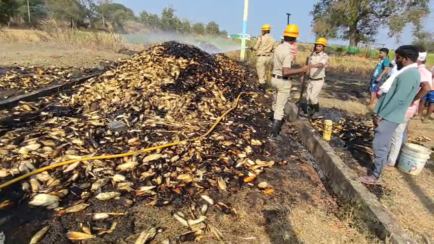Tags: HaveriKarnataka News beatMaize piled up after being cut and burnt to ashes