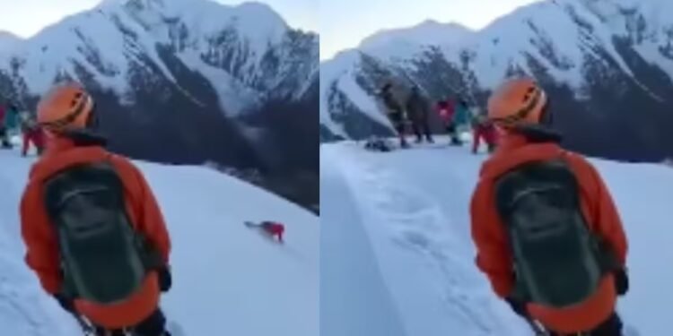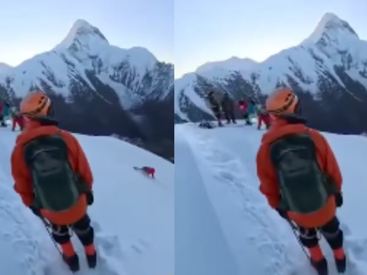 The heart-stopping fall on the icy 5,588-meter sub-peak of Mount Gongga was caught in… pic.twitter.com/CY49zTRQ44