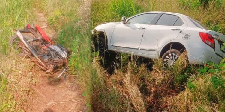 ಬೈಕ್, ಕಾರಿನ ನಡುವೆ ಭೀಕರ ಅಪಘಾತ | ಪಾದಚಾರಿ ಸೇರಿ ಮೂವರು ಸ್ಥಳದಲ್ಲೇ ಸಾವು