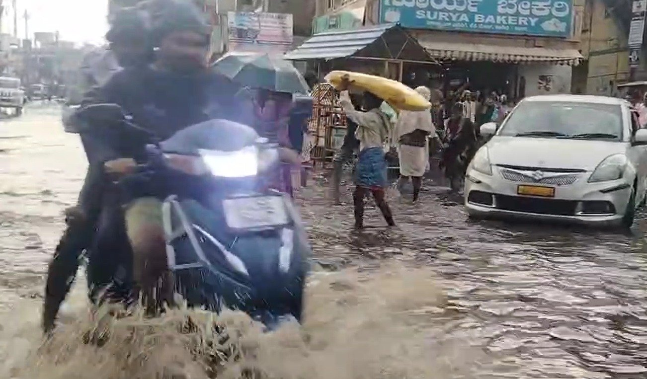 ನಗರದ ಹಲವೆಡೆ ಮರಗಳು ನೆಲಕಚ್ಚಿವೆ. ನಗರದ ಹಳೆ ಪಿಬಿ ರೋಡ್ ರಸ್ತೆಯಲ್ಲಿ ನದಿಯಂತೆ ನೀರು ಹರಿದಿದ್ದು, ರಸ್ತೆಗಳು ಸಂಪೂರ್ಣ ಜಲಾವೃತಗೊಂಡಿವೆ. ಇದರಿಂದಾಗಿ ವಾಹನ ಸವಾರರು ಪರದಾಟ ನಡೆಸಿದ್ದಾರೆ. ದ್ವಿಚಕ್ರ ವಾಹನ ಸೇರಿ ಕಾರುಗಳು ರಸ್ತೆಯಲ್ಲೇ ಸಿಲುಕಿ, ಸವಾರರು ಒದ್ದಾಡಿದ್ದಾರೆ.