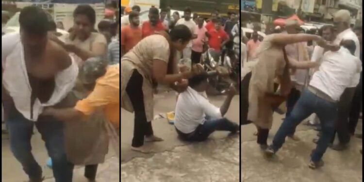 ಈ ದೃಶ್ಯವನ್ನು ಸಾರ್ವಜನಿಕರು ನಿಂತುಕೊಂಡು ನೋಡುತ್ತಿರುವುದು ವಿಡಿಯೋದಲ್ಲಿ ಸೆರೆಯಾಗಿದೆ. ಇನ್ನು ವಿಷಯ ತಿಳಿಯುತ್ತಿದ್ದಂತೆ ಸ್ಥಳಕ್ಕೆ ಪೊಲೀಸರು ಭೇಟಿ ನೀಡಿ ಮಹಿಳೆಯನ್ನು ಸಮಾಧಾನ ಪಡಿಸಿ ಪರಿಸ್ಥಿತಿಯನ್ನು ನಿಭಾಯಿಸಿದ್ದಾರೆ. ಸದ್ಯ ಈ ವಿಡಿಯೋ ಸಮಾಜಿಕ ಜಾಲತಾಣದಲ್ಲಿ ವೈರಲ್ ಆಗಿದೆ.