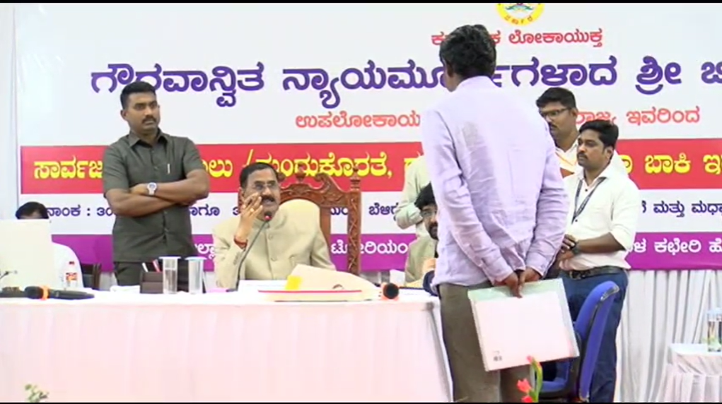 ಸುಳ್ಳು ದಾಖಲಾತಿ ಕೊಟ್ಟು ಅಂಗವಿಕಲವೆಂದು ಪ್ರಮಾಣ ಪತ್ರ ನೀಡಿ ನೌಕರಿ ಪಡೆದಿದ್ದಾರೆ ಎಂದು ದೂರು ನೀಡಲು ಬಂದಿದ್ದ ಮಂಜುನಾಥ್ಗೆ ಉಪಲೋಕಾಯುಕ್ತರು ನಿಮಗೇನು ಹೊಟ್ಟೆಕಿಚ್ಚು, ಸುಳ್ಳು ಕೇಸ್ ನೀಡಿದರೆ ಮೂರು ತಿಂಗಳು ಜೈಲಿಗೆ ಹಾಕಿಸುತ್ತೇನೆ, ತಪ್ಪೋಪ್ಪಿಗೆ ಬರೆದುಕೊಡು ಎಂದು ಹೇಳಿದ್ದಾರೆ. ಆ ಬಳಿಕ ಸುಮ್ಮನಾದ ಮಂಜುನಾಥ್, ತಪ್ಪೋಪ್ಪಿಗೆ ಬರೆದುಕೊಟ್ಟಿದ್ದಾನೆ.