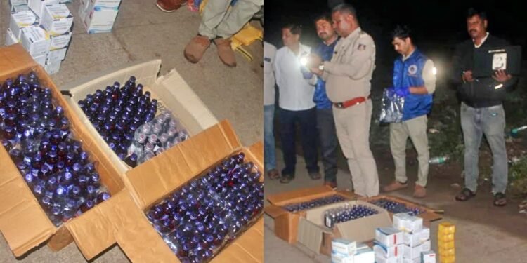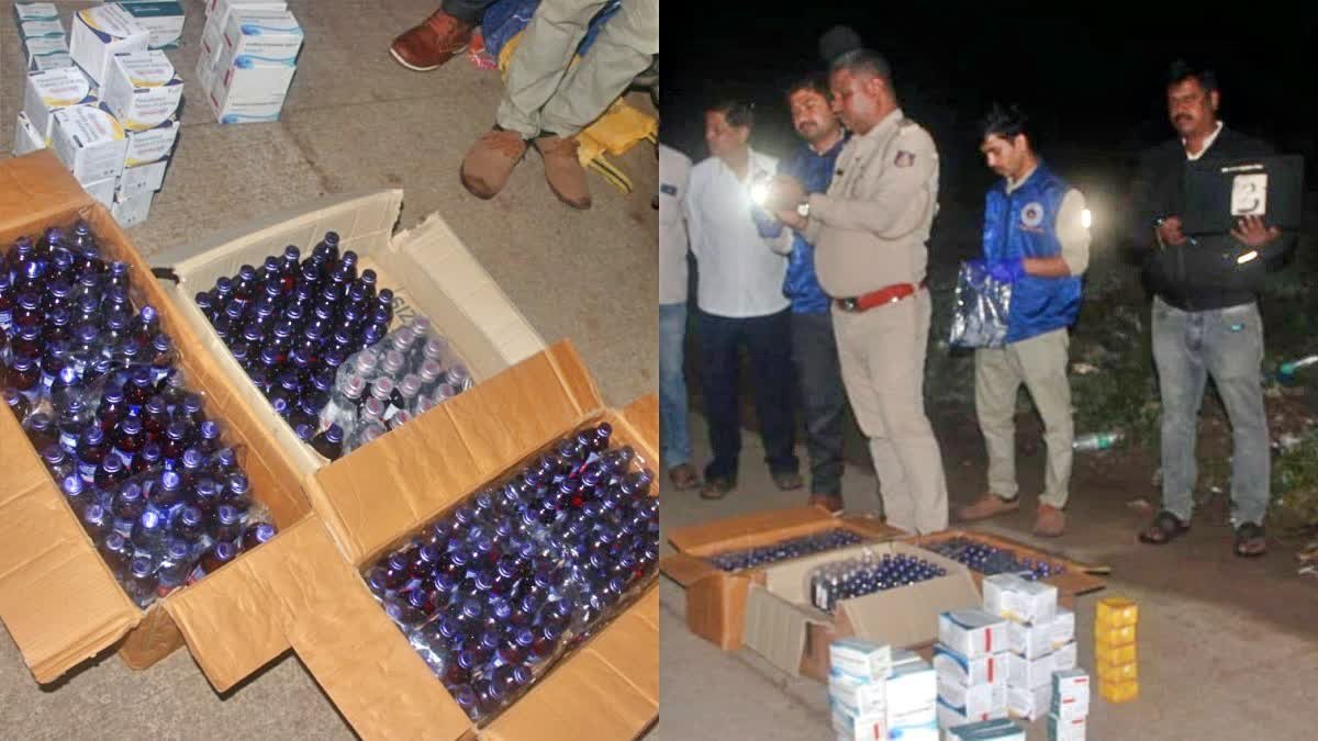 ಇವರಿಂದ 100 ಎಂ.ಎಲ್ನ ಒಟ್ಟು 340 Broncof-C cough Syrup ಬಾಟಲ್ಗಳು, 100 ಎಂ.ಎಲ್ನ 15 EDEX-CT cough Syrup ಬಾಟಲ್ಗಳು, 20 ಸಣ್ಣ ಬಾಕ್ಸ್ಗಳಲ್ಲಿರುವ aceclofenac Paracetamol & serratiopeptidase tablets, ಒಂದು ಹೊಂಡಾ ಆಕ್ಟಿವಾ ಬೈಕ್, 1,200 ರೂ., ನಗದು ಸೇರಿ ಒಟ್ಟು 1,25,504 ರೂ. ಮೌಲ್ಯದ ಔಷಧಗಳನ್ನು ವಶಕ್ಕೆ ಪಡೆಯಲಾಗಿದೆ.