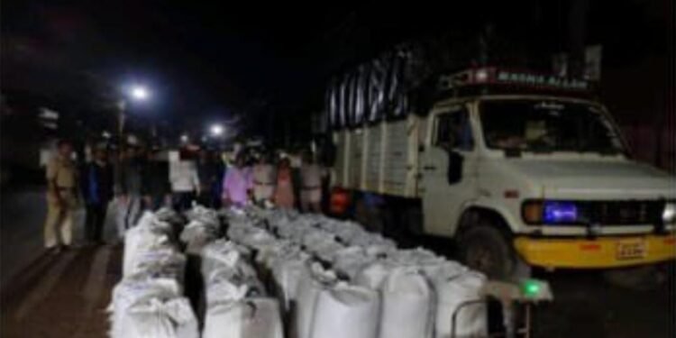 ಉತ್ತರ ಕನ್ನಡ: ಉತ್ತರ ಕನ್ನಡ ಜಿಲ್ಲೆಯ ಶಿರಸಿ ತಾಲ್ಲೂಕಿನಲ್ಲಿ ಅನ್ನಭಾಗ್ಯ ಯೋಜನೆಯಡಿ ನೀಡುವ ಅಕ್ಕಿಯನ್ನು ಫಲಾನುಭವಿಗಳಿಂದ ಸಂಗ್ರಹಿಸಿ ಅಕ್ರಮವಾಗಿ ಸಾಗಿಸುತ್ತಿದ್ದ ವೇಳೆ ಅರೋಪಿಗಳನ್ನು ಬಂಧಿಸಿದ್ದಾರೆ.