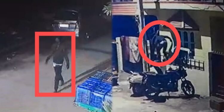 ರಾತ್ರಿಯಿಡೀ ಹೊಂಚು ಹಾಕಿದ ಖದೀಮ ಬೆಳಗಿನ ಜಾವ ಕಳ್ಳತನಕ್ಕೆ ಮುಂದಾಗಿದ್ದಾನೆ. ಕಾಂಪೌಂಡ್ ಹತ್ತಿ ಮನೆ ಒಳಗೆ ಹೋಗಿರುವ ಕಳ್ಳ, ಬಳಿಕ ಮನೆಯಲ್ಲಿ ಕಳ್ಳತನ ಮಾಡಲು ಸಾಧ್ಯವಾಗದೇ ಬರಿಗೈನಲ್ಲಿ ವಾಪಸ್ ಆಗಿದ್ದಾನೆ.