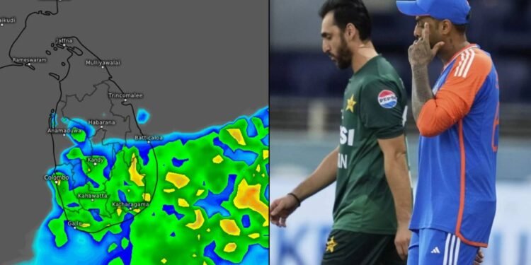 ಅಕ್ಯೂವೆದರ್ (AccuWeather) ಮತ್ತು ಗೂಗಲ್ ಹವಾಮಾನ ವರದಿಗಳ ಪ್ರಕಾರ, ಭಾನುವಾರ ಸಂಜೆ ಕೊಲಂಬೊದಲ್ಲಿ ಗುಡುಗು ಸಹಿತ ಮಳೆಯಾಗುವ ಸಾಧ್ಯತೆ ಶೇ. 50 ರಷ್ಟಿದೆ. ಸ್ಥಳೀಯ ಸಮಯ ಸಂಜೆ 5 ರಿಂದ 6 ಗಂಟೆಯ ಅವಧಿಯಲ್ಲಿ ಗುಡುಗು ಸಹಿತ ಮಳೆಯಾಗಬಹುದು ಎಂದು ಅಂದಾಜಿಸಲಾಗಿದೆ. ಪಂದ್ಯವು ಸಂಜೆ 7 ಗಂಟೆಗೆ ಆರಂಭವಾಗಬೇಕಿದ್ದು, ಟಾಸ್ ಪ್ರಕ್ರಿಯೆಗೆ ಮಳೆ ಅಡ್ಡಿಪಡಿಸುವ ಸಾಧ್ಯತೆಯಿದೆ. ಆದರೆ, ಹವಾಮಾನ ತಜ್ಞ ನವದೀಪ್ ದಹಿಯಾ ಅವರ ಪ್ರಕಾರ, “ಮಧ್ಯಾಹ್ನ ಮತ್ತು ಸಂಜೆಯ ನಡುವೆ ಒಂದು ಅಥವಾ ಎರಡು ಬಾರಿ ಸಾಧಾರಣ ಮಳೆಯಾಗಬಹುದು. ಆದರೆ ಸಂಜೆ 6 ಗಂಟೆಯ ನಂತರ ವಾತಾವರಣ ಸುಧಾರಿಸುವ ನಿರೀಕ್ಷೆಯಿದೆ. ಪಂದ್ಯದಾದ್ಯಂತ ಮಳೆ ಸುರಿಯುವ ಸಾಧ್ಯತೆ ಕಡಿಮೆ,” ಎಂದು ಸ್ವಲ್ಪ ನೆಮ್ಮದಿಯ ಸುದ್ದಿ ನೀಡಿದ್ದಾರೆ.