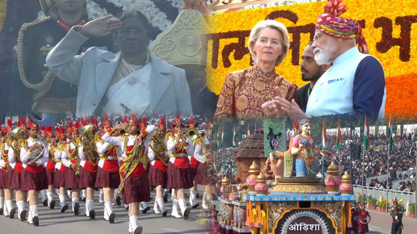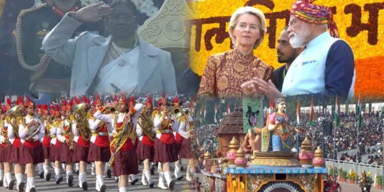 ಸಮಾರಂಭ ಆರಂಭಕ್ಕೂ ಮುನ್ನ ಪ್ರಧಾನಿ ನರೇಂದ್ರ ಮೋದಿ ಅವರು ರಾಷ್ಟ್ರೀಯ ಯುದ್ಧ ಸ್ಮಾರಕಕ್ಕೆ ಭೇಟಿ ನೀಡಿ, ಹುತಾತ್ಮರಿಗೆ ಪುಷ್ಪಗುಚ್ಛ ಅರ್ಪಿಸಿ ಗೌರವ ಸಲ್ಲಿಸಿದರು. ತದನಂತರ, ರಾಷ್ಟ್ರಪತಿ ದ್ರೌಪದಿ ಮುರ್ಮು ಅವರು ಈ ಬಾರಿಯ ಮುಖ್ಯ ಅತಿಥಿಗಳಾಗಿ ಆಗಮಿಸಿದ್ದ ಐರೋಪ್ಯ ಮಂಡಳಿಯ ಅಧ್ಯಕ್ಷ ಆಂಟೋನಿಯೊ ಕೋಸ್ಟಾ ಮತ್ತು ಯುರೋಪಿಯನ್ ಕಮಿಷನ್ ಅಧ್ಯಕ್ಷೆ ಉರ್ಸುಲಾ ವಾನ್ ಡೆರ್ ಲೇಯನ್ ಅವರೊಂದಿಗೆ ಸಾಂಪ್ರದಾಯಿಕ ಬಗ್ಗಿಯಲ್ಲಿ (ಕುದುರೆ ಗಾಡಿ) ಆಗಮಿಸಿದರು. ರಾಷ್ಟ್ರಪತಿಗಳ ಅಂಗರಕ್ಷಕ ಪಡೆಯು ಈ ಭವ್ಯ ಮೆರವಣಿಗೆಯನ್ನು ಮುನ್ನಡೆಸಿತು.