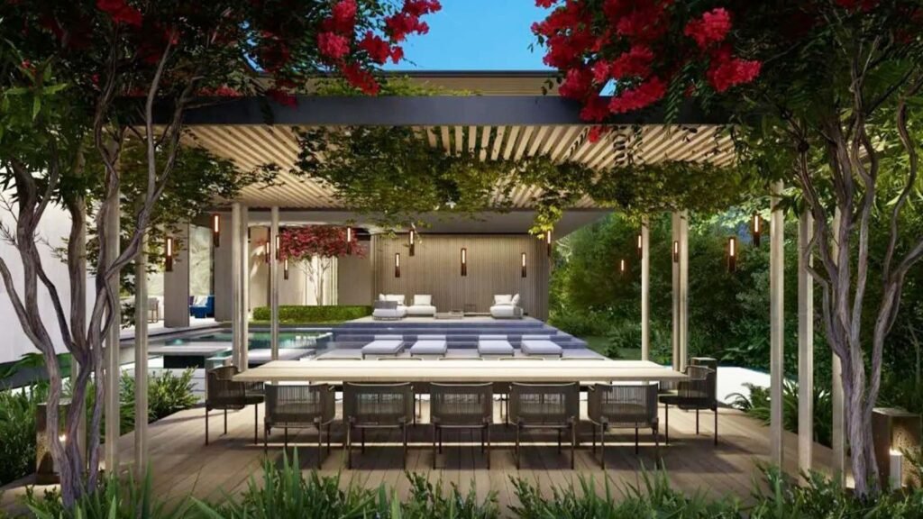 ಮನೆಯ ಒಳಗಿನ ಅಂದದಷ್ಟೇ ಹೊರಗಿನ ವಿನ್ಯಾಸವೂ ಅದ್ಭುತವಾಗಿದೆ. ವಿಶಾಲವಾದ ಸ್ವಿಮ್ಮಿಂಗ್ ಪೂಲ್, ಅದರ ಪಕ್ಕದಲ್ಲೇ ಬೆಳಗಿನ ಕಾಫಿ ಕುಡಿಯಲು ವಿರಾಮದ ತಾಣ ಮತ್ತು ಹೊರಾಂಗಣ ಭೋಜನದ ವ್ಯವಸ್ಥೆಯನ್ನು ಮಾಡಲಾಗಿದೆ. ಕ್ಯಾಲಿಫೋರ್ನಿಯಾ ಮತ್ತು ಕೊಂಕಣ ಶೈಲಿಯ ಮಿಶ್ರಣವಾಗಿರುವ ಈ ವಿಲ್ಲಾವು ಅಲಿಬಾಗ್ನ ಹಸಿರಿನ ನಡುವೆ ಒಂದು ಪುಟ್ಟ ಸ್ವರ್ಗದಂತೆ ಕಾಣಿಸುತ್ತದೆ. ಇತ್ತೀಚೆಗಷ್ಟೇ ಇದೇ ಪ್ರದೇಶದಲ್ಲಿ 32 ಕೋಟಿ ರೂಪಾಯಿ ಮೌಲ್ಯದ ಮತ್ತೊಂದು ಆಸ್ತಿಯನ್ನು ಈ ದಂಪತಿ ಖರೀದಿ ಮಾಡಿದ್ದಾರೆ ಎಂದು ವರದಿಯಾಗಿದೆ.