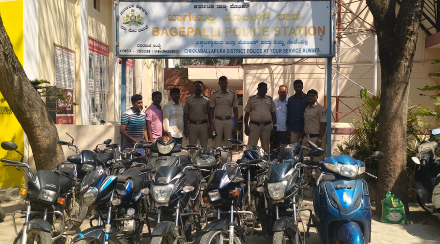 ಚಿಕ್ಕಬಳ್ಳಾಪುರ: ಅಂತರರಾಜ್ಯ ಮಟ್ಟದಲ್ಲಿ ಬೈಕ್ ಕಳ್ಳತನ ಮಾಡುತ್ತಿದ್ದ ಆರೋಪಿಯನ್ನು ಬಂಧಿಸಿರುವ ಬಾಗೇಪಲ್ಲಿ ಪೊಲೀಸ್ ಠಾಣೆ ಪೊಲೀಸರು ಸುಮಾರು 10 ಲಕ್ಷ ರೂಪಾಯಿ ಮೌಲ್ಯದ 13 ಬೈಕ್ಗಳನ್ನು ವಶಪಡಿಸಿಕೊಂಡಿದ್ದಾರೆ.