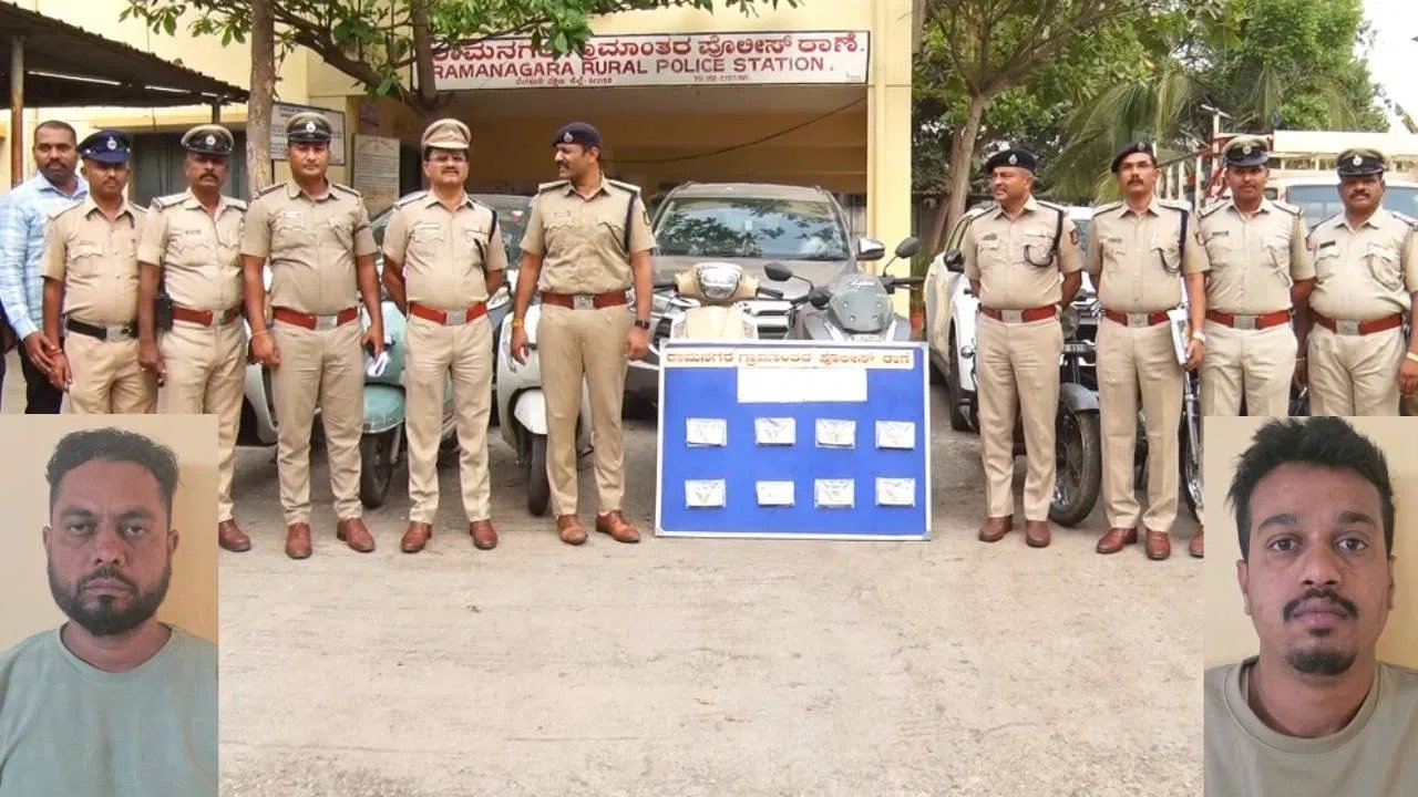 ಬೆಂಗಳೂರು ದಕ್ಷಿಣ ಜಿಲ್ಲೆಯ ರಾಮನಗರ ಗ್ರಾಮಾಂತರ ಠಾಣೆ ಪೊಲೀಸರು ಕಾರ್ಯಾಚರಣೆ ನಡೆಸಿ ಇಬ್ಬರು ಅಂತಾರಾಜ್ಯ ಕಳ್ಳರನ್ನ ಬಂಧಿಸಿದ್ದಾರೆ. ಅಂದಹಾಗೆ ಶಿವಮೊಗ್ಗ ಮೂಲದ ಶಾಹಿದ್ ಅಹಮದ್ (27) ಹಾಗೂ ತುಮಕೂರು ಮೂಲದ ಅಪ್ಸರ್ ಅಹಮದ್ (40) ಬಂಧಿತ ಆರೋಪಿಗಳು. ಇವರಿಬ್ಬರು ರಾಜ್ಯದ ವಿವಿಧ ಜಿಲ್ಲೆಗಳಲ್ಲಿ ವಾಹನ ಕಳ್ಳತನ ಮಾಡಿದ್ದಾರೆ. ಸದ್ಯ ಬಂಧಿತ ಆರೋಪಿಗಳಿಂದ 50 ಲಕ್ಷ ರೂ ಮೌಲ್ಯದ 2 ಅಶೋಕ್ ಲೈಲ್ಯಾಂಡ್ ಗೂಡ್ಸ್ ವಾಹನ, 3 ಕಾರುಗಳು, 10 ದ್ವಿಚಕ್ರ ವಾಹನಗಳು ಹಾಗೂ 4 ಲಕ್ಷ ರೂ ನಗದು ವಶಕ್ಕೆ ಪಡೆದುಕೊಂಡಿದ್ದು, 13 ಪ್ರಕರಣಗಳನ್ನು ಭೇದಿಸಿದ್ದಾರೆ. ಈ ಖದೀಮರು ರಾಮನಗರ, ಮಂಡ್ಯ, ಬೆಂಗಳೂರು, ತುಮಕೂರು, ಕೋಲಾರ, ಬಳ್ಳಾರಿ ಹಾಗೂ ಹುಬ್ಬಳ್ಳಿ ನಗರಗಳಲ್ಲೂ ತಮ್ಮ ಕೈಚಳಕ ತೋರಿಸಿದ್ದಾರೆ.