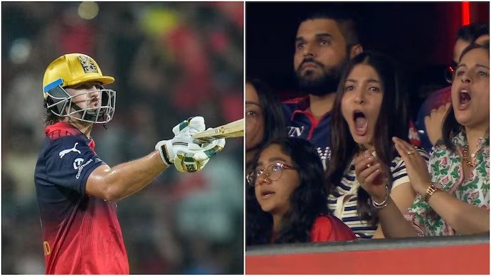 ಟಿಮ್ ಡೇವಿಡ್ ಅವರ ಈ ಸ್ಫೋಟಕ ಆಟ ಕೇವಲ ಕ್ರೀಡಾಂಗಣದಲ್ಲಿದ್ದ ಅಭಿಮಾನಿಗಳನ್ನು ಮಾತ್ರವಲ್ಲದೆ, ಗಣ್ಯರನ್ನೂ ಬೆರಗುಗೊಳಿಸಿತು. ಪಂದ್ಯ ವೀಕ್ಷಿಸಲು ಉಪಸ್ಥಿತರಿದ್ದು ಆರ್ಸಿಬಿ ತಂಡವನ್ನು ಹುರಿದುಂಬಿಸುತ್ತಿದ್ದ ಬಾಲಿವುಡ್ ನಟಿ ಅನುಷ್ಕಾ ಶರ್ಮಾ, ಡೇವಿಡ್ ಅವರ ಭೀಕರ ಸಿಕ್ಸರ್ಗಳನ್ನು ಕಂಡು ಆಶ್ಚರ್ಯಚಕಿತರಾದರು. ಡೇವಿಡ್ ಒಂದರ ಹಿಂದೊಂದರಂತೆ ಚೆಂಡನ್ನು ಗ್ಯಾಲರಿಗೆ ಅಟ್ಟುತ್ತಿದ್ದರೆ, ಅನುಷ್ಕಾ ಬೆರಗಾಗುವ ದೃಶ್ಯ ಕ್ಯಾಮೆರಾದಲ್ಲಿ ಸೆರೆಯಾಯಿತು. ತಮ್ಮ ಇನ್ನಿಂಗ್ಸ್ ಮುಗಿಸಿ ಡ್ರೆಸ್ಸಿಂಗ್ ರೂಮ್ನಲ್ಲಿದ್ದ ವಿರಾಟ್ ಕೊಹ್ಲಿ ಕೂಡ ಹೊರಬಂದು ಈ ರಣರೋಚಕ ಆಟವನ್ನು ಕಣ್ತುಂಬಿಕೊಂಡರು. ಅನುಷ್ಕಾ ಅವರಂತೆಯೇ ವಿರಾಟ್ ಕೂಡ ಡೇವಿಡ್ ಬ್ಯಾಟಿಂಗ್ಗೆ ಮಂತ್ರಮುಗ್ಧರಾಗಿ ನಿಂತಿದ್ದರು.