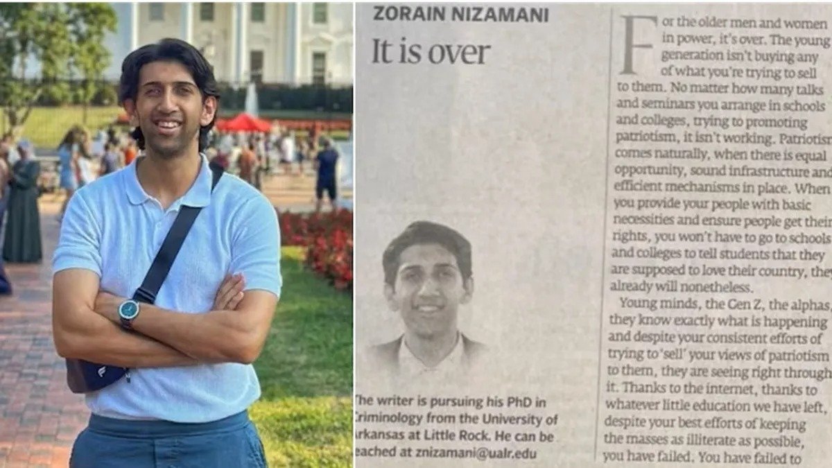 ಜೊರೈನ್ ನಿಜಾಮನಿ ಪ್ರಸ್ತುತ ಅಮೆರಿಕದ ಅರ್ಕಾನ್ಸಾಸ್ ವಿಶ್ವವಿದ್ಯಾಲಯದಲ್ಲಿ ಕ್ರಿಮಿನಾಲಜಿ ವಿಷಯದಲ್ಲಿ ಪಿಎಚ್ಡಿ ಮಾಡುತ್ತಿದ್ದಾರೆ. ಅವರ ಪೋಷಕರು ಪಾಕಿಸ್ತಾನದ ಹೆಸರಾಂತ ನಟರಾಗಿದ್ದರೂ, ಜೊರೈನ್ ತಮ್ಮ ಪ್ರಖರ ಬರವಣಿಗೆಯ ಮೂಲಕ ಇಂದು ಇಡೀ ದೇಶದ ಗಮನ ಸೆಳೆದಿದ್ದಾರೆ. ಒಟ್ಟಾರೆಯಾಗಿ, ಪಾಕಿಸ್ತಾನದ ‘ಝೆಡ್ ಪೀಳಿಗೆ’ ಆಡಳಿತ ವರ್ಗದ ವಿರುದ್ಧ ಸಿಡಿದೆದ್ದಿದೆ ಎಂಬುದಕ್ಕೆ ಈ ಲೇಖನವೇ ಸಾಕ್ಷಿ.