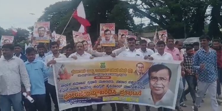 ಮೈಸೂರು : ಸಚಿವ ಸ್ಥಾನದಿಂದ ಕೆ. ಎನ್‌ ರಾಜಣ್ಣ ವಜಾಗೊಳಿಸಿರುವುದನ್ನು ಖಂಡಿಸಿ ಕಾಂಗ್ರೆಸ್ ಸರ್ಕಾರದ ವಿರುದ್ಧ ವಾಲ್ಮೀಕಿ ಸಮುದಾಯದಿಂದ ಪ್ರತಿಭಟನೆ ನಡೆದಿದೆ.
