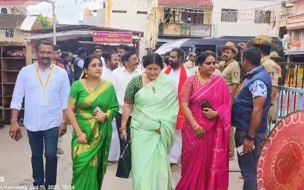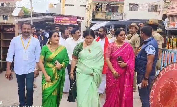 ಹಾಸನ : ವರ್ಷಕ್ಕೊಮ್ಮೆ ಮಾತ್ರ ತೆರೆದಿರುವ ಪುರಾಣ ಪ್ರಸಿದ್ಧ ಹಾಸನಾಂಬೆ ದೇಗುಲಕ್ಕೆ ಕನ್ನಡ ಸಿನಿಮಾ ತಾರೆಯರು ಇಂದು ಭೇಟಿ ನೀಡಿದ್ದಾರೆ. ನಟಿ ಮಾಳವಿಕ, ಜಯಮಾಲ, ಶೃತಿ ಸೇರಿದಂತೆ ಕನ್ನಡದ ಹಲವು ನಟ-ನಟಿಯರು ಹಾಸನಾಂಬೆ ದರ್ಶನ ಪಡೆದಿದ್ದಾರೆ. ಸಾರ್ವಜನಿಕ ದರ್ಶನದ ಆರನೇ ದಿನ ದರ್ಶನಕ್ಕೆ ಆಗಮಿಸಿದ ಸಿನಿ ತಾರೆಯರು, ಪ್ರತಿ ವರ್ಷದಂತೆ ಈ ವರ್ಷವೂ ಹಾಸನಾಂಬೆಯ ದರ್ಶನಕ್ಕೆ ಜೊತೆಯಾಗಿ ಆಗಮಿಸಿದ್ದಾರೆ.