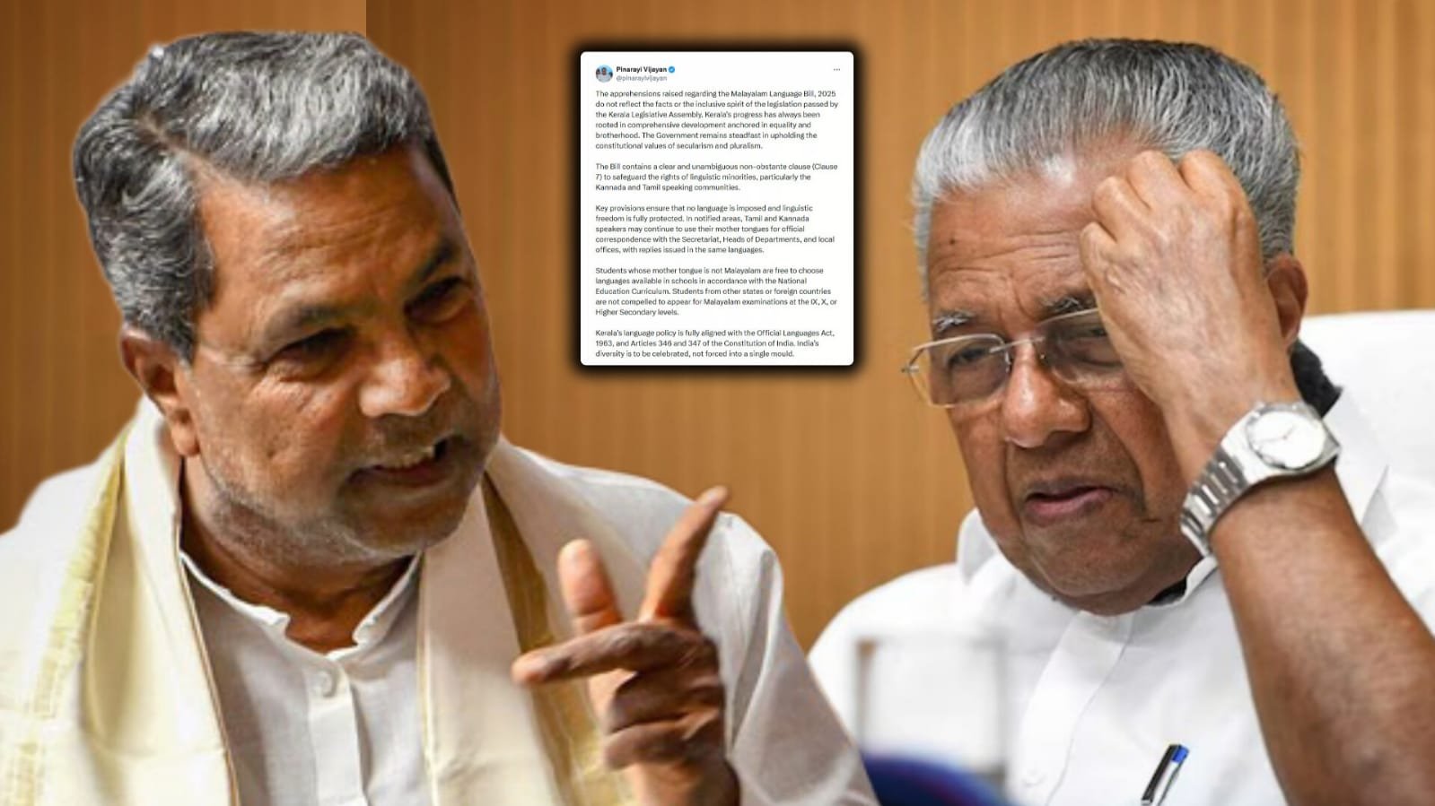 ಸಿಎಂ ಸಿದ್ದರಾಮಯ್ಯ ಅವರ ಪತ್ರಕ್ಕೆ ಇಂದು ಸ್ಪಷ್ಟನೆ ನೀಡಿರುವ ಕೇರಳ ಸಿಎಂ, “ನಮ್ಮ ಸರ್ಕಾರ ಯಾವುದೇ ಭಾಷೆಯನ್ನು ಬಲವಂತವಾಗಿ ಹೇರುವ ಉದ್ದೇಶ ಹೊಂದಿಲ್ಲ. ಭಾಷಾ ಅಲ್ಪಸಂಖ್ಯಾತರ ಹಕ್ಕುಗಳ ರಕ್ಷಣೆಗೆ ಕಾಯ್ದೆಯಲ್ಲಿ ಪ್ರಮುಖ ಅಂಶಗಳನ್ನು ಸೇರಿಸಲಾಗಿದೆ” ಎಂದು ಹೇಳಿದ್ದಾರೆ.