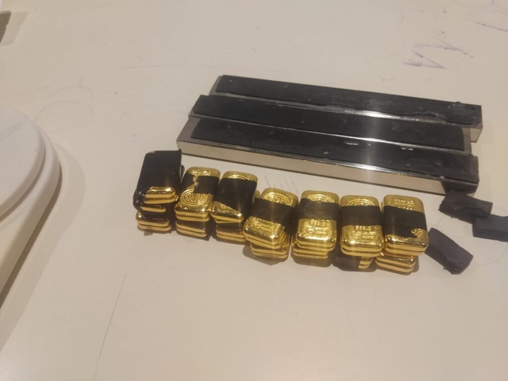 ಬೆಂಗಳೂರು: ಏರ್ಪೋಟ್ ನಿಂದ ಹೊರಗಡೆ ಬರುತ್ತಿದ್ದ ಪ್ರಯಾಣಿಕನ ಟ್ರಾಲಿ ಬ್ಯಾಗ್ ನಲ್ಲಿ ಕೆಜಿ ಕೆಜಿ ಚಿನ್ನ ಪತ್ತೆಯಾಗಿದೆ.