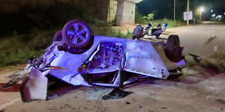 ಕೋಲಾರ : ಡಿವೈಡರ್ಗೆ ಕಾರು ಡಿಕ್ಕಿಯಾಗಿ ನಜ್ಜುಗುಜ್ಜಾಗಿದ್ದು, ಕಾರಿನಲ್ಲಿದ್ದ ನಾಲ್ವರು ಮೃತಪಟ್ಟಿರುವ ಘಟನೆ ಕೋಲಾರ ಜಿಲ್ಲೆಯ ಮಾಲೂರು ತಾಲೂಕಿನ ಅಬ್ಬೇನಹಳ್ಫಿ ಬಳಿ ನಡೆದಿದೆ.