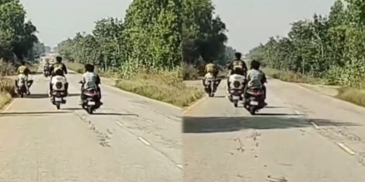 ಹೆಲ್ಮೆಟ್ ಧರಿಸದೇ ನಿರ್ಲಕ್ಷ್ಯ ತೋರಿದ್ದಾರೆ. ಸದ್ಯ ಯುವಕರ ವೀಲ್ಹಿಂಗ್ ಹುಚ್ಚಾಟದ ದೃಶ್ಯಗಳು, ಸಾಮಾಜಿಕ ಜಾಲತಾಣದಲ್ಲಿ ವೈರಲ್ ಆಗಿದ್ದು, ಪುಂಡರ ಹೆಡೆಮುರಿ ಕಟ್ಟುವಂತೆ ಸಾರ್ವಜನಿಕರ ಒತ್ತಾಯಿಸಿದ್ದಾರೆ.